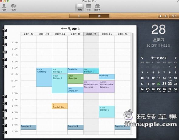 iStudiez Pro 是一款非常华丽的面向在校生的日程管理软件,充分利用你的时间,合理安排各项日程,支持跟踪并提醒事件计划。目前iStudiez Pro 拥有Mac版和iPad与iPhone版,能实现内容同步,确保信息的及时沟通。